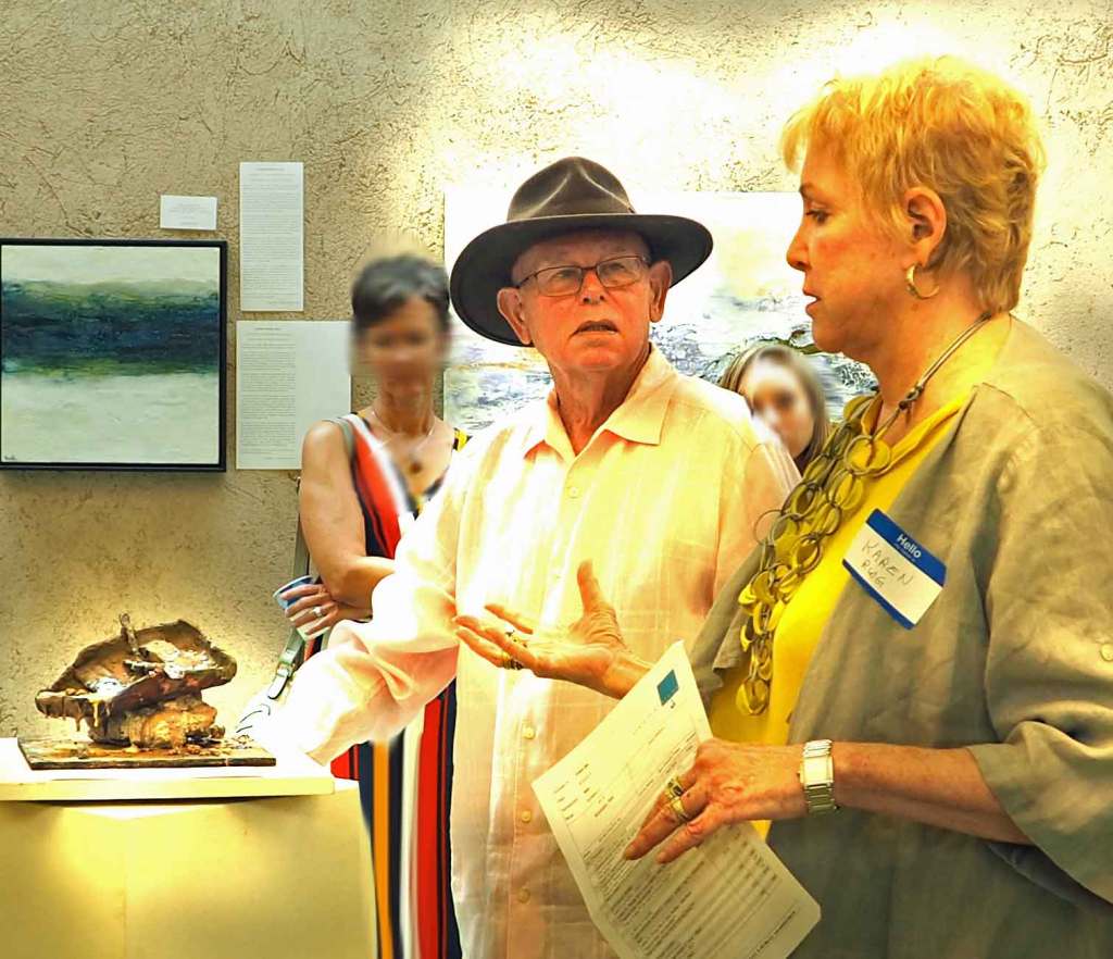 The opening was unlike any other. The Roaming Writers Group from Santa Fe wrote poetry and prose about most pieces. Randy was honored when the writer Karen Winston presented her work, inspired by The Last Boat. Her moving work, describing how the magnificent apple tree on Canyon Road might be lost due to global warming, will appear here soon.