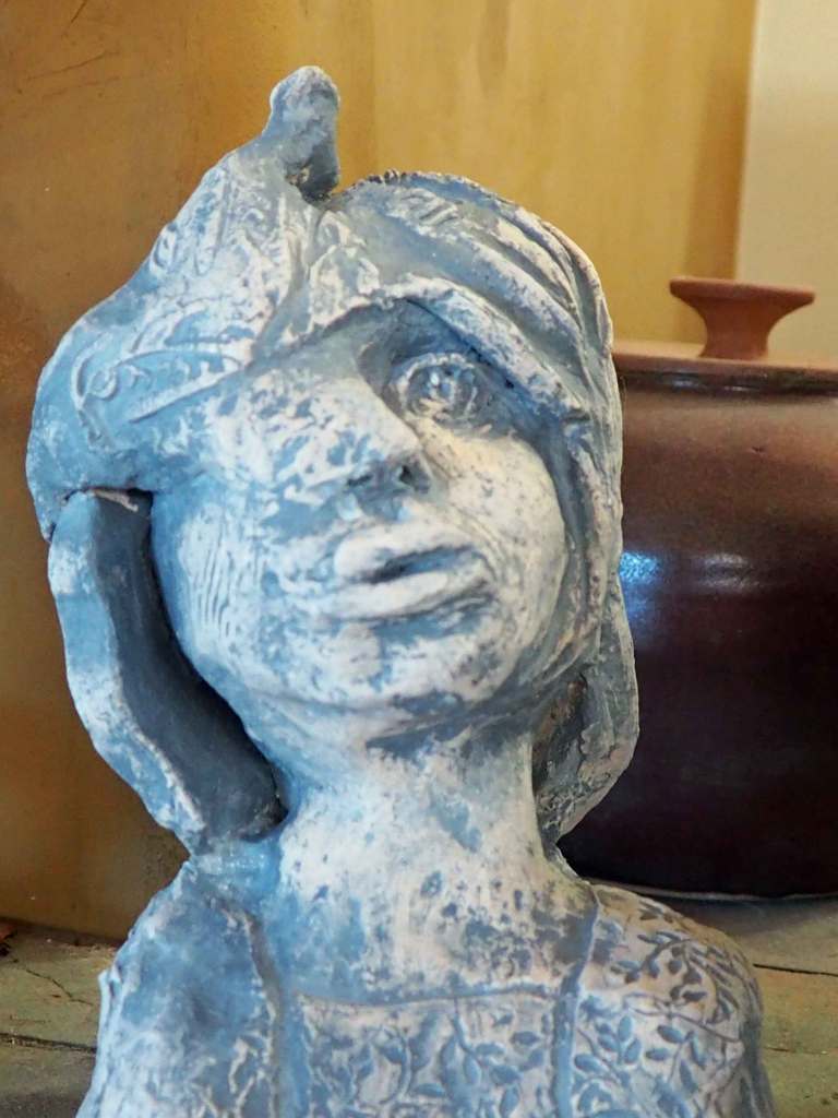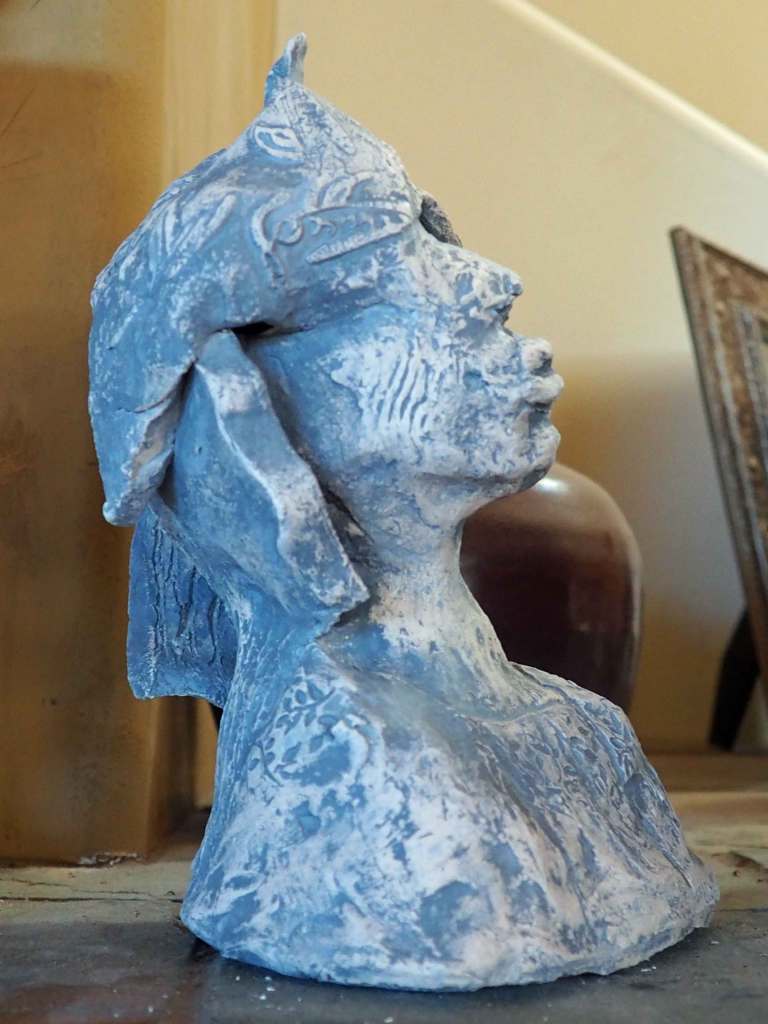 Months went by before I remembered him. And a few more months before he told me what to do with him. (No concept, I hear someone saying.) Yesterday I put a black underglaze on Tut and then scrubbed him down.